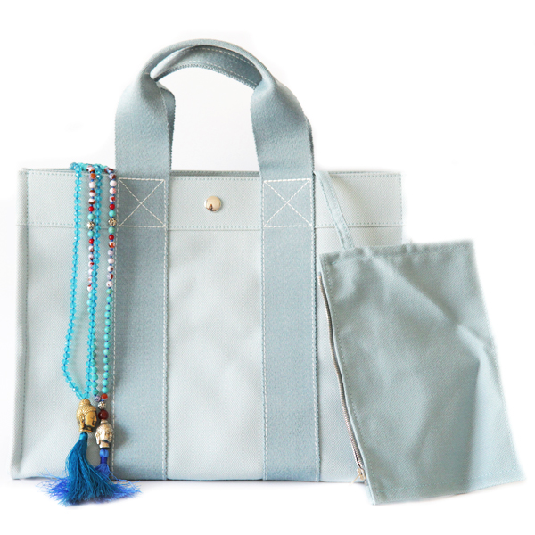 Voici la dernière trouvaille de Matemonsac, avec ce cabas de plage de luxe Hermès en bleu celadon 😉