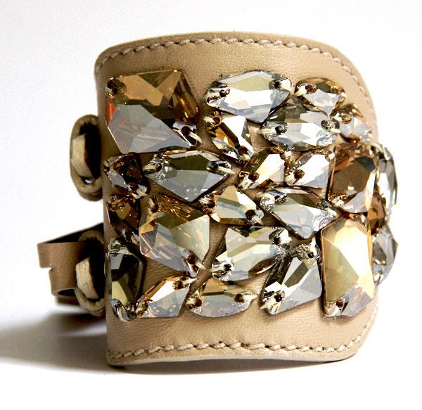 Alexander McQueen Bracelet manchette en cuir et strass brodé vintage à 149€