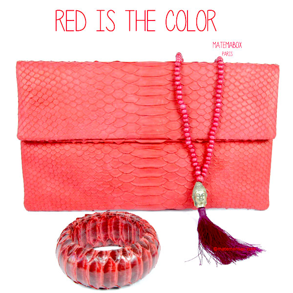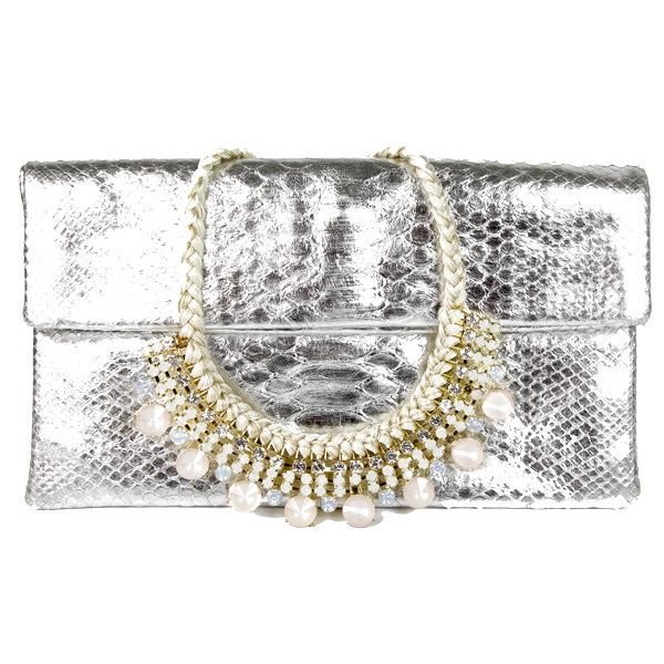 Box Silver: Pochette en python véritable et Collier en fil de soie et strass by Matemonsac