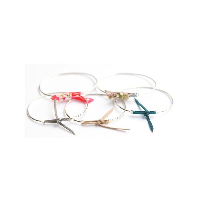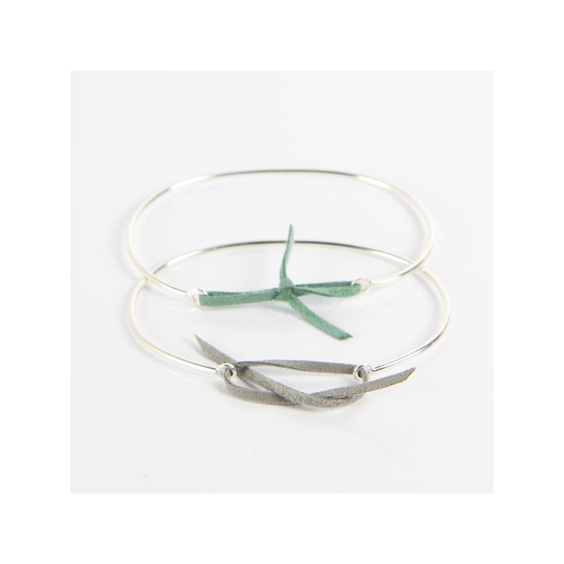 Bracelet Jonc en plaqué Argent avec lien en nubuck vert