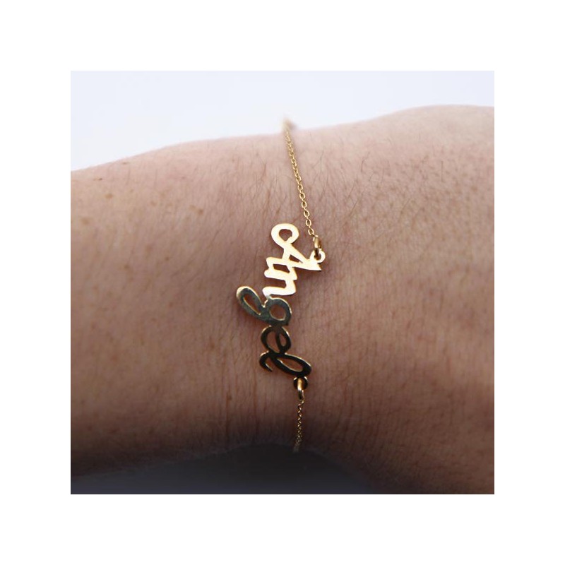 Matemonsac lance sa toute première collection de bracelets à message. Ce bracelet au mot Angel joliment écrit, est élégant, discret et spirituel. Sa chaîne fine permet de mettre en valeur le mot Angel. Ce bracelet By Matemonsac a été fabriqué dans un atelier à Paris. Il est entièrement plaqué en or, 3 microns, le top pour un bijou de haute-qualité. Il conviendra parfaitement à toutes les femmes qui souhaitent avoir un bracelet original et qui leur ressemble ! Grâce à son plaquage en or de qualité supérieure, ce bracelet Angel ne bougera pas. Une fois mis à votre poignet, vous pourrez le garder jour et nuit ! Pensez au collier Angel By Matemonsac en plaqué or pour avoir un sublime ensemble romantique et chic. C'est une superbe idée de cadeau qui fera le bonheur de votre Ange.