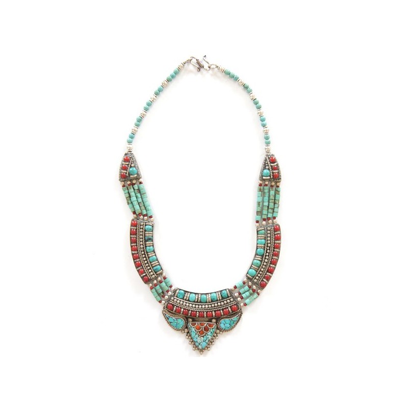 Collier Ethnique en Cornaline et Turquoise