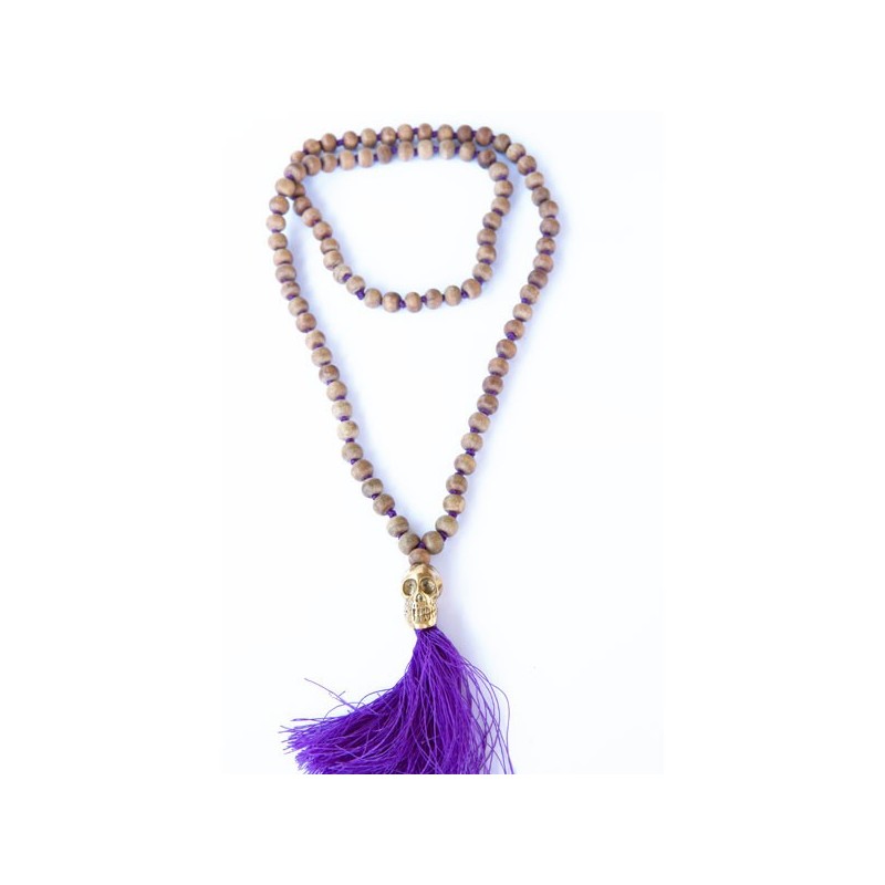 Ce superbe collier en perles de bois avec sa tête de mort en bronze et pompon violet est empreint de spiritualité. Entièrement réalisé à la main à Bali, il nous a conquise car il est simple, original, rock et chic à la fois. A offrir à une personne à qui l'on veut du bien ou à s'offrir. Et pour toutes les fans du film Eat, Pray, Love (Mange, prie, aime) avec Julia Roberts il sera idéal puisqu'elle en porte un. Idée de cadeau de Noël ou d'anniversaire.
