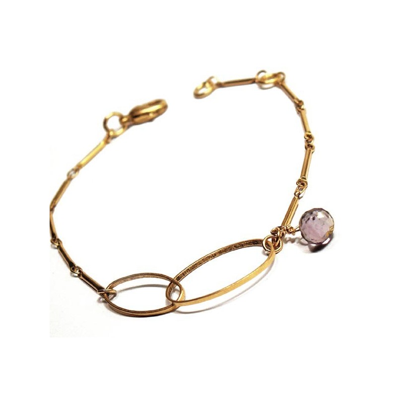 This bracelet in 24-carat gold-plated metal and amethyst is both delicate and sober. It's perfect for all your outfits, from the most eccentric to the most classic! Amethyst symbolizes wisdom and strength, and its element is water. Amethyst is a powerful stone that protects against negative energy and carries a high spiritual vibration. Culturally, it is found as a bishop's stone or a stone of the spiritual path in Buddhism. Amethyst converts energy into love, combats stress and acts as a natural tranquilizer.