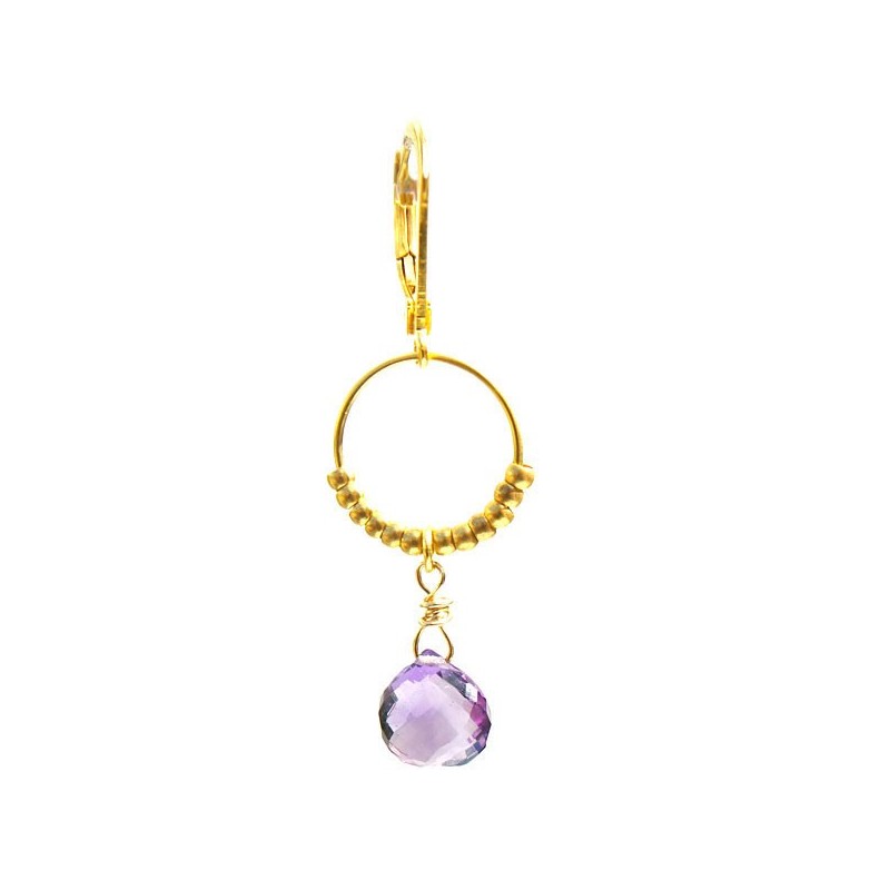 These earrings in 24-carat gold-plated metal and amethyst pearls are an adorable, stylish piece of jewelry at an affordable price. An ideal gift for any elegant woman! Amethyst is said to have soothing properties. It brings calm, mental equilibrium and serenity. By combating stress, insomnia and anger, amethyst promotes concentration and meditation.