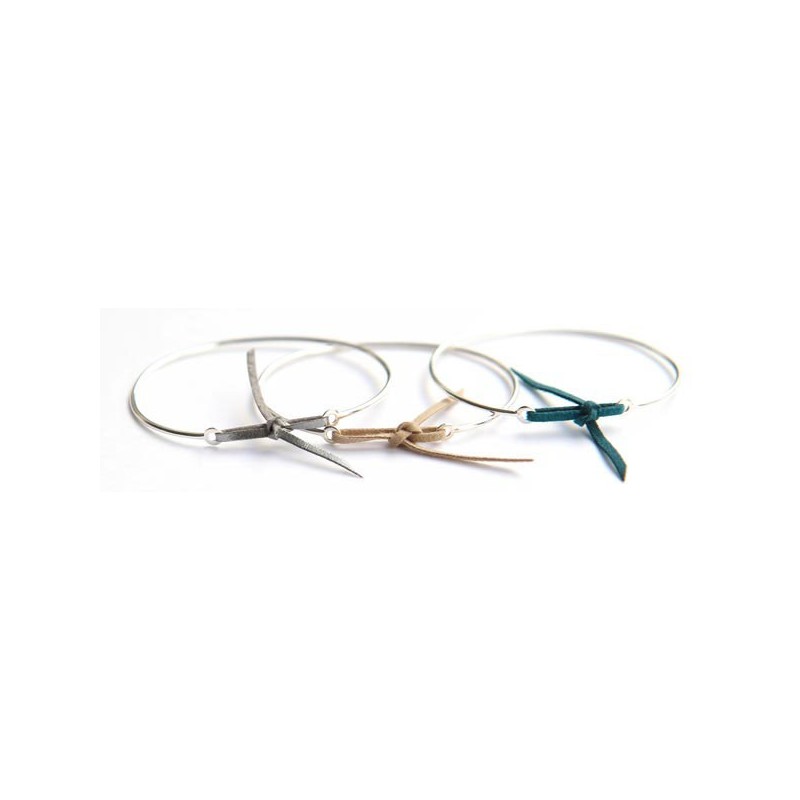 Jonc Argent et lien nubuck Bordeaux
