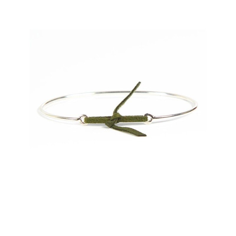 Jonc Argent et lien nubuck Kaki