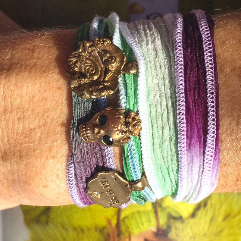Each piece of jewelry comes with a silk bracelet in a color of your choice. You can wear this ribbon in the shower or in the sea - it will patina over time.