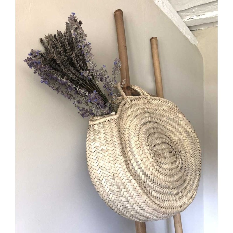 This superb oval beach basket in natural woven wicker is a beach bag that can also be worn in the city.