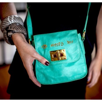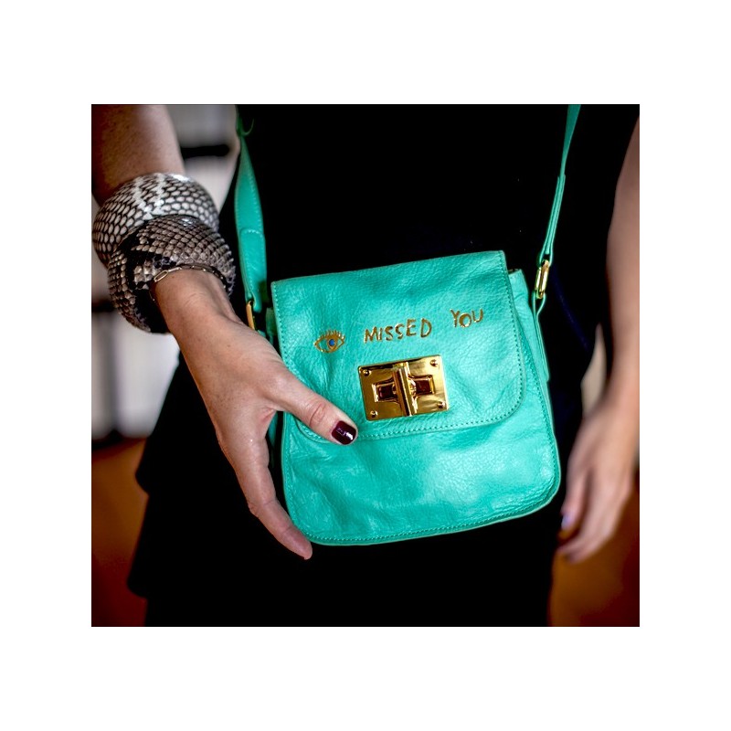This ultra trendy bag is also full or humor with its golden writing and its blue eye!