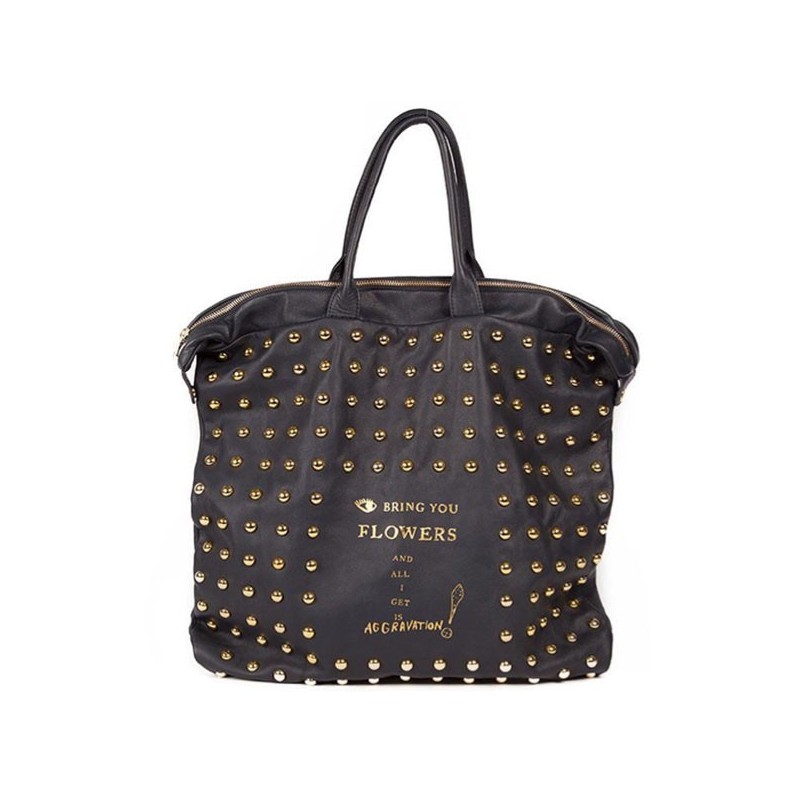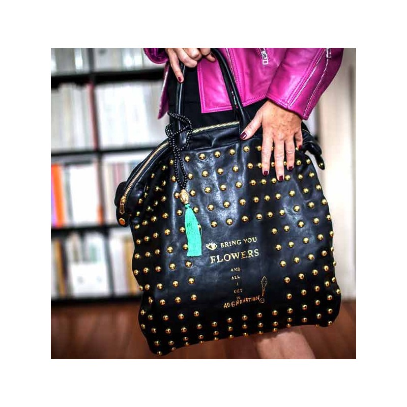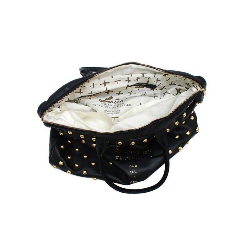 Details: Beige cotton lining. Interior zipped pocket and two big pockets. Golden leather printing.