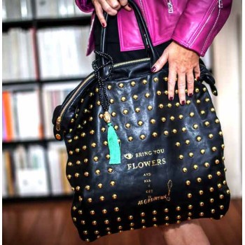 A superb black rectangular handbag created by the New Zeelander brand Paris House.