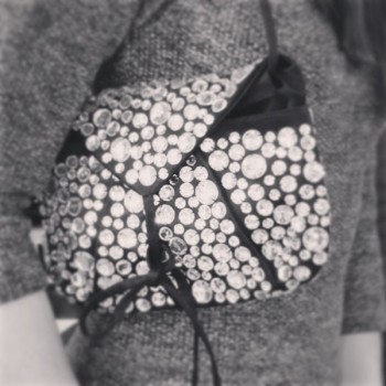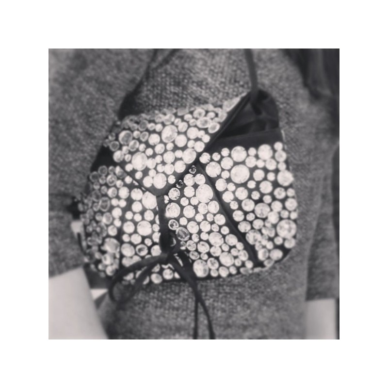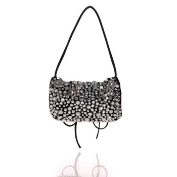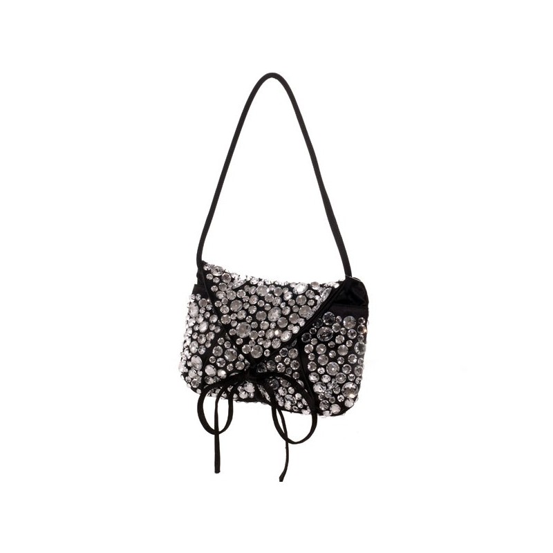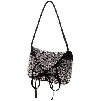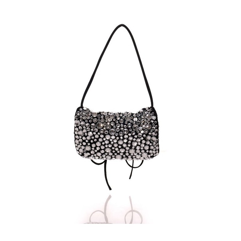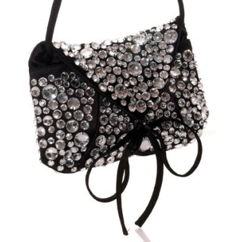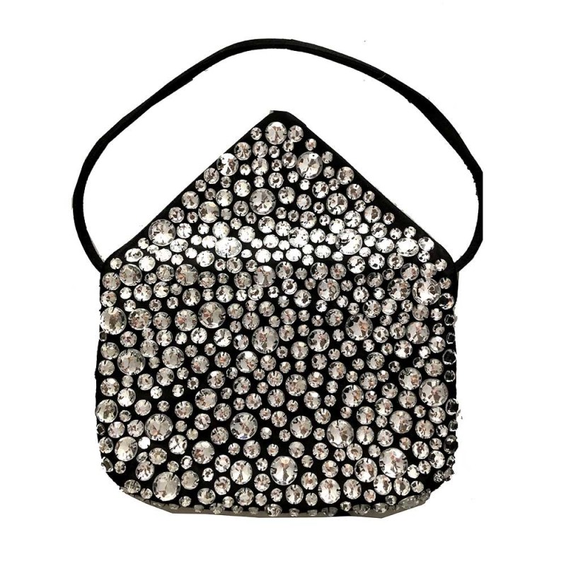 Vintage black satin and embroidered rhinestone bag by the Parisian fashion house Sonia Rykiel. Circa 2005.