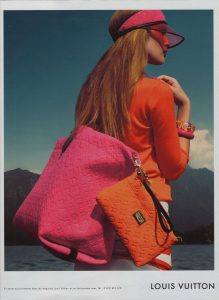 Avec un magnifique sac cabas en néoprène coloris fuchsia de la collection Louis Vuitton Cruise 08/09 pour la modique somme de 1200 euros et sa pochette assortie à 450 euros.