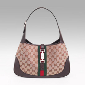 Le sac « Jackie » de la maison Gucci a été créé en 1955 et est l’une des pièces mythiques de la maison Gucci. En 1964, Jackie Kennedy commande 6 exemplaires de ce modèle. Des photos d’elle sont prises avec ce sac en Grèce ou à New-York. A la fin des années 60 la maison Gucci décide de le baptiser le sac « Jackie ». D’une forme trapézoïdale avec des anses rigides il se porte à l’épaule et est sobre et chic à la fois.