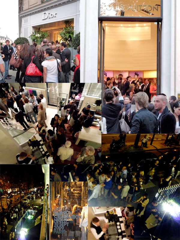 Mais j’ai trouvé que l’animation était finalement moins le fait des marques que celui des femmes parfois déguisées ou habillées dans des tenues dignes des soirées chez l’Ambassadeur alors que nous étions seulement en train de faire du shopping ! Tout le monde avait sorti sa tenue d’apparat pour faire la belle.. Nous sommes arrivées en plein milieu d’un essayage de cuissardes incroyables chez Louis Vuitton : des cuissardes dorées que la jeune femme s’était empressée d’essayer en jetant négligemment ses Louboutin par terre.. Et oui, le principe est bien entendu de vendre. Toutes ces boutiques de luxe nous reçoivent avec de somptueux décors au milieu desquels il y a un incessant ballet de serveurs qui tournoient habilement avec des plateaux de coupes de champagne mais elles le font pour saouler les clientes pour mieux leur vendre leurs produits. C’est astucieux et efficace d’après ce que nous en avons vu hier soir.