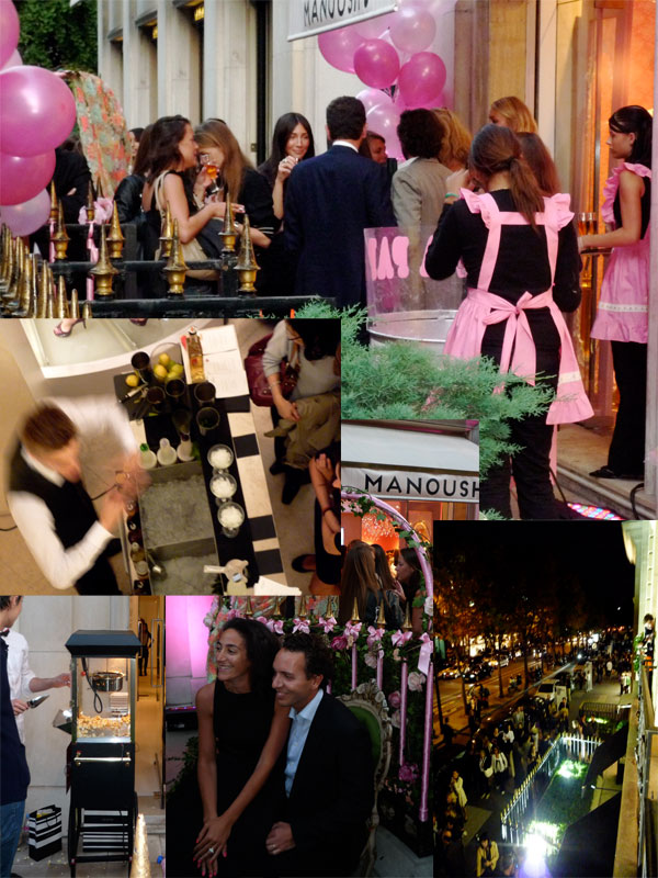 Nous avons réalisé pour vous un benchmark des buffets et des champagnes servis. Côté buffet nous avons remis la palme à Dior avec des petits fours très étonnants. Chez Céline ils en faisaient un qui mixait saumon fumé et gingembre confit : excellent. Manoush offrait des barbes à papa histoire de nous faire régresser un bon coup mais aussi de créer une formidable animation devant leur boutique tout en proposant aux invités de se faire photographier dans un décor « bonbon ». Joseph a aussi voulu nous amuser avec une machine à pop corn.