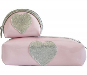 Trousse et porte-monnaie Anne-Charlotte Goutal rose pâle et coeur argent