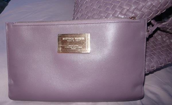 3. Une pochette Bottega Veneta intégrée au sac et doublée de daim taupe.