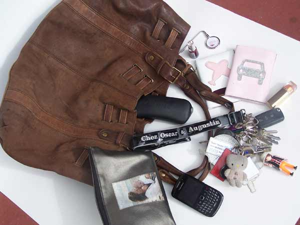 Dans son (vieux) sac Gérard Darel usé, patiné, aux couleurs d’automne qu’elle adore il y a toujours :