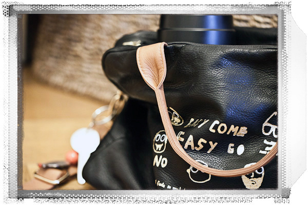 Il se trouve que ce magnifique sac à main est en vente sur mon site matemonsac.localhost.com. En effet j’ai découvert les créations de Sharon Paris pour Paris House il y a bientôt deux ans. Cette jeune néo-zélandaise a commencé avec de la petite maroquinerie sur laquelle elle imprimait des messages amusants afin de « créer du lien », puis elle s’est lancée cet hiver dans les sacs à main avec ce modèle de sac week-end dans une superbe qualité de cuir, avec une bandoulière amovible et un message « Easy come easy go » et des dessins rigolos ! Je suis fan également car j’en porte un et ce presque tous les jours. C’est le type de sac que l’on ne voit pas chez tout le monde et qui donc possède ce je ne sais quoi qui le rend unique !