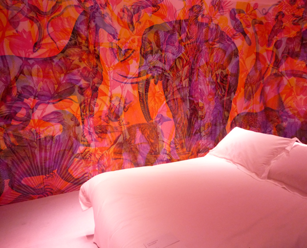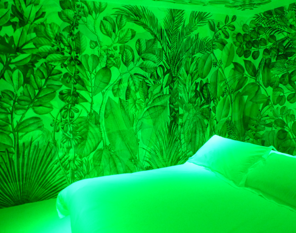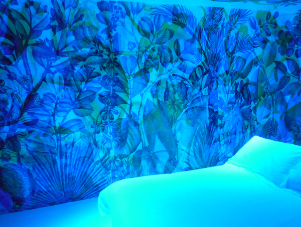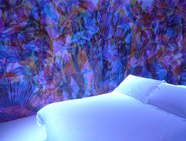 Voici une animation qui m’a beaucoup plu, une chambre dont les murs changent de coloris grâce à un système de variation de lumière. Ne m’en demandez pas plus, regardez les photos :
