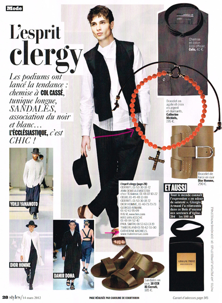 Vous savez que nous soutenons cette créatrice de bijoux hors du commun depuis longtemps. C’est donc avec une grande joie que nous découvrons que ce prestigieux magazine a choisi l’un de ses bracelets pour illustrer le thème « Esprit Clergy ».