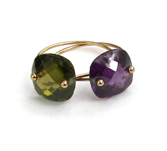 – Bague Paloma Stella plaqué or et pierre semi-précieuse : Améthyste, Quartz beige, vert, rose pâle, fumé (brun-noir), bleu – 39€ uniquement !