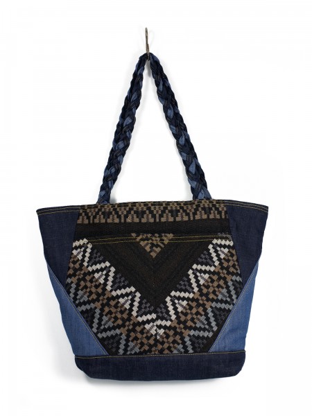 Ce grand panier fait partie de la série Laine, denim et obsession triangle : lainages imprimés, toile de jean en empiècements et motifs triangles dans tous les sens. Cette mini-collection fait honneur aux inspirations amérindiennes dans une version revisitée sur des sacs et porte-monnaies aux formes pratiques et ludiques pour l’automne/hiver 2012. C’est aussi une pièce unique, fabriquée en France.