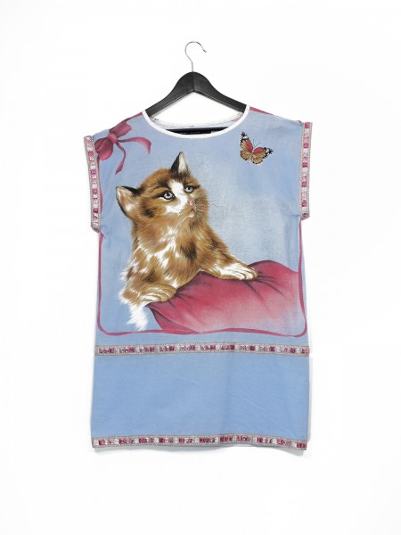 La collection »a week in bed » propose une série de pièces uniques autour du thème de la chambre à coucher et du débraillé … des versions sublimées des vêtements d’intérieur qu’on l’on a envie de mettre à l’extérieur. Ce tee-shirt long peut aussi être porté en mini-robe.
