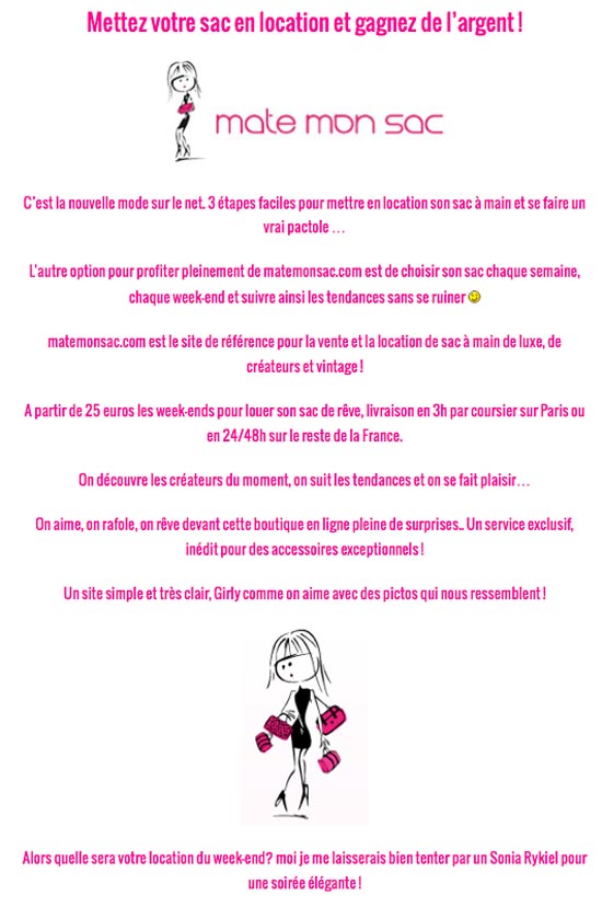 Un grand merci à Isalyne pour nous avoir envoyé cette jolie parution qui parle de nous. Mate Mon Sac est à nouveau dans les bons plans pour nous les filles et nous en sommes très fières !
