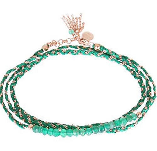 Long, il permet de faire entre 3 et 5 tours sur votre poignet ! Disponible en de nombreuses couleurs : bleu, rose, vert, violet… on adore les médailles en métal doré qui ornent le bracelet.
