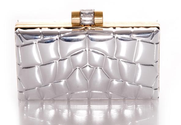 – La minaudière Yves Saint Laurent en cuir et croco argent.