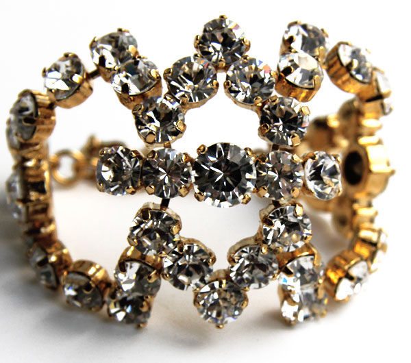 – Bracelet Yves Saint Laurent articulé en métal doré et strass cristal.