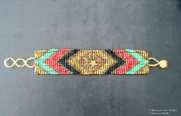 Nous craquons également sur les superbes manchettes de la collection Indies. Des bracelets d’inspiration ethnique réalisés en perles multicolores dans un atelier parisien. Ils nous rappellent ceux que nous nous amusions à fabriquer dans notre enfance…