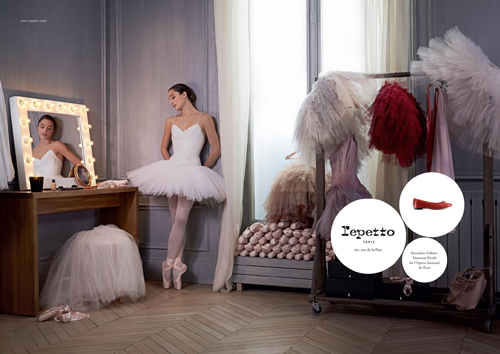 Pour sa campagne de publicité Printemps/été 2013 la maison Repetto met en scène la danseuse Étoile de l’Opéra National de Paris, Dorothée Gilbert.