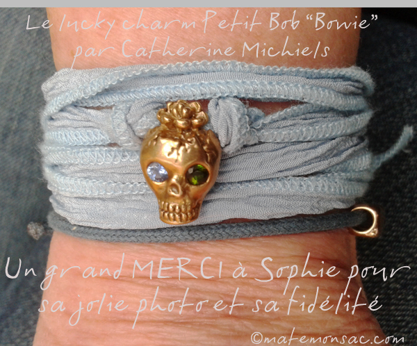 Cette semaine, Sophie a choisi le lucky charm Petit Bob appelé Bowie car il a un oeil en saphir bleu et l’autre en tourmaline. C’est une belle référence au chanteur David Bowie !