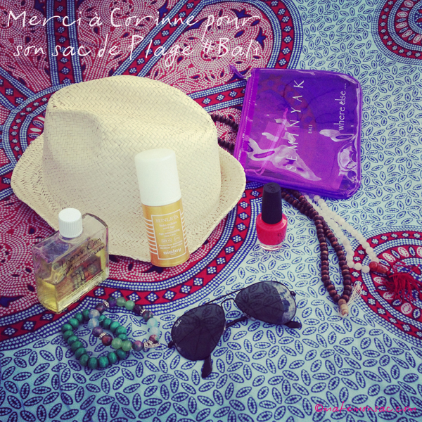 Dans le cadre de notre grand Concours de l’été, Corinne nous a envoyé la photo de son sac de plage qu’elle nous a vidé à Bali pour notre plus grand plaisir.