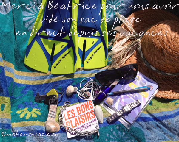 Aujourd’hui, c’est au tour de Béatrice, après Séverine, de nous vider son sac de plage pour le concours d’été de matemonsac.localhost.com.