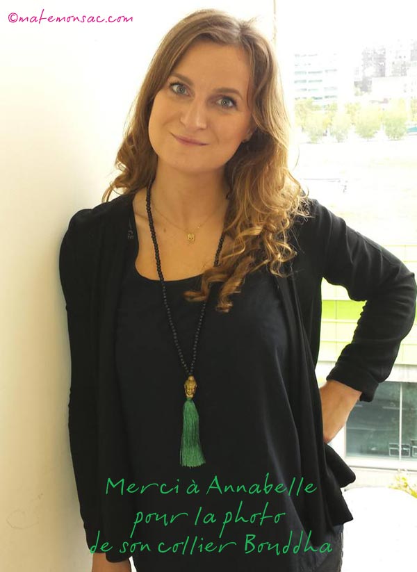 Annabelle est une fidèle cliente de matemonsac.localhost.com, elle a choisi de s’offrir une pause zen avec le collier bouddha.