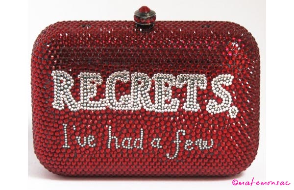 Avec sa magnifique Minaudière « Regrets I’ve had a few » de Paris House en strass de Swarovski rouge, Fabienne est resplendissante. Cette mini pochette de luxe est parfaite pour les cocktails parisiens, un mariage et même pour le Festival de Cannes. La minaudière de Paris House possède la taille idéale pour contenir nos essentiels de soirée comme un rouge à lèvres, un téléphone portable, une carte de crédit et des clés. Cette minaudière en strass de Paris House, pleine d’humour, est idéale pour toutes les femmes souhaitant être la « reine de la soirée ».