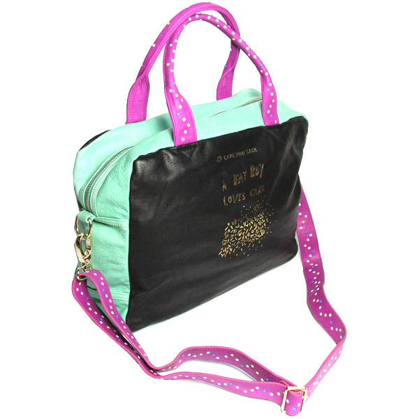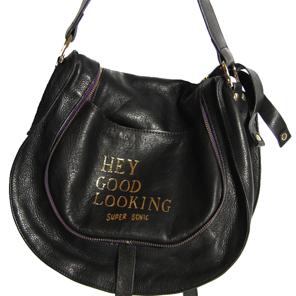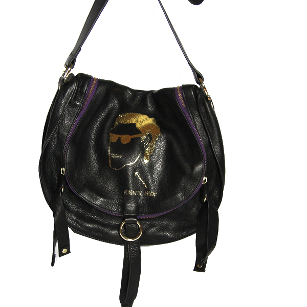 Paris House est une marque néo-zélandaise remplie d’humour. Sur la besace de Géraldine il est inscrit en lettres dorées « Hey Good Looking Super Sonic ». Puis lorsque l’on relève son rabat on découvre le visage du bel homme ! Et enfin, à l’intérieur sur la doublure il est écrit « Ridiculous over-priced fashion and its followers ». D’un format idéal, elle permet à Géraldine de transporter tous ses essentiels.