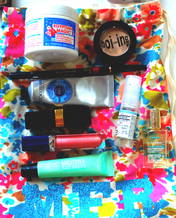 – Et du maquillage rangé dans une pochette qu’une de ses amies a créé pour elle et qu’elle affectionne tout particulièrement ..
