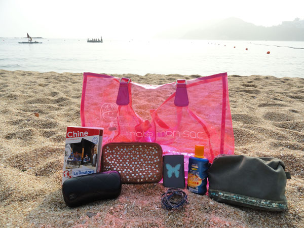 Mais pour l’heure, prenons l’avion direction Hong Kong pour voir le contenu du sac de plage By Matemonsac de notre charmante cliente Ophélie.