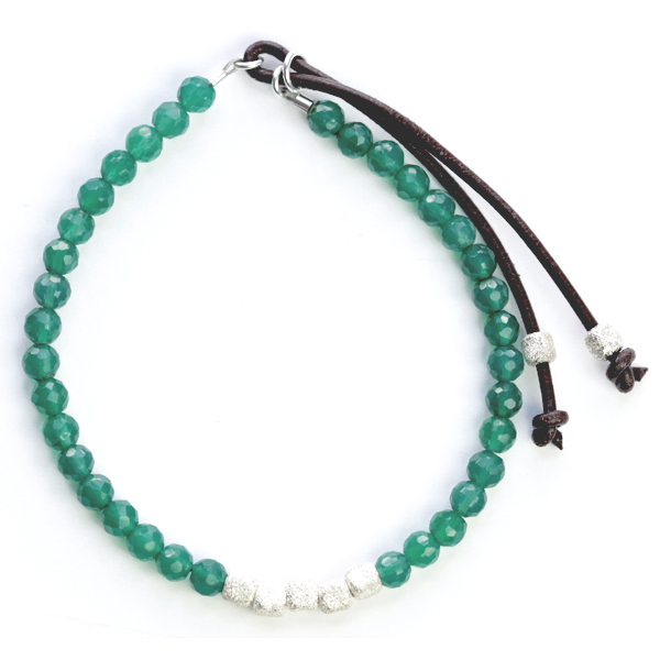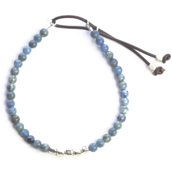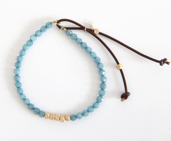 Le voici ! Marie-Hélène a opté pour celui en perles d’agate bleu-gris et ses cinq cubes d’or.