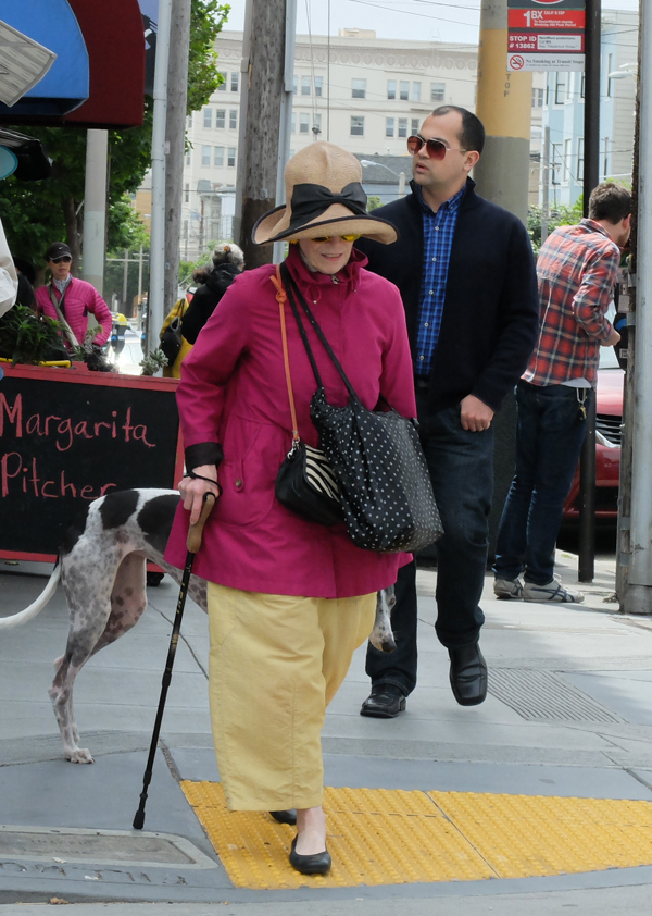Cette photo est l’une des plus belles que nous avons prises jusqu’à présent en Californie. Cette femme californienne qui se promène dans les rues de San Francisco est ultra élégante. Sac capeline et son sourire lui donne une élégance certaine.