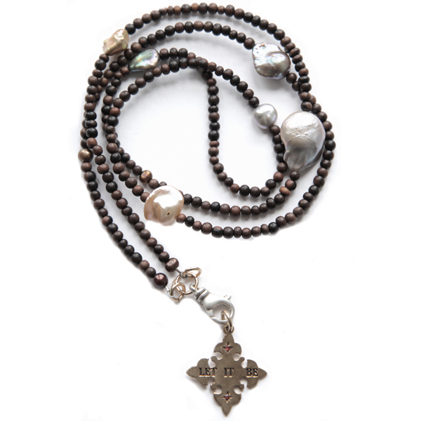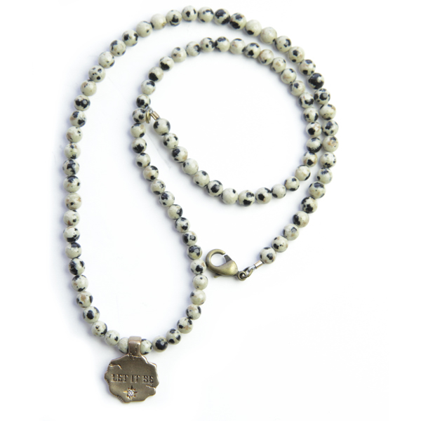 Autour de son collier, Monika a attaché les lucky charms Let it Be en argent et le Cosmic eye en bronze.