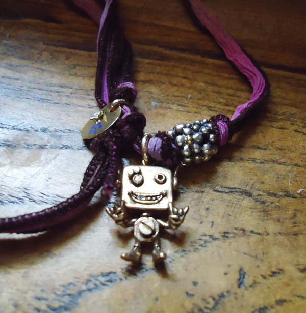 Monika, gourmande des bijoux gri-gris de Catherine Michiels, a aussi craqué sur le lucky charm Fred, le petit robot rigolo.