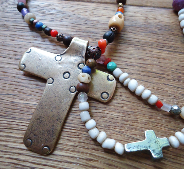 Catherine Michiels offre à ses bijoux une âme spirituelle qui relie l’esprit au corps. Des bijoux porte-bonheur remplis d’énergie. La créatrice de ces fabuleux bijoux, crée également des bijoux religieux pour femme et homme. Monika a succombé au collier avec croix en argent avec des perles multicolores.