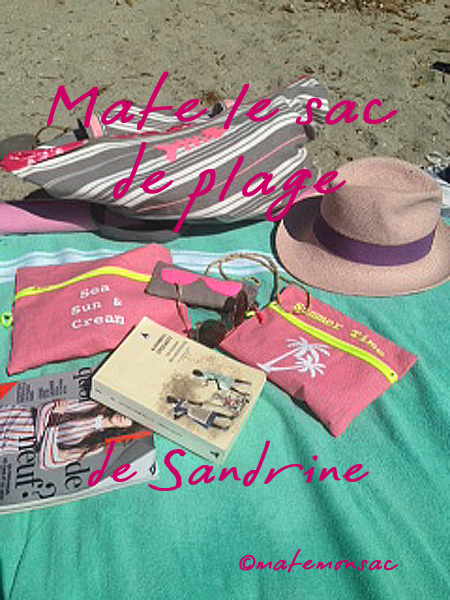 Nous aimons ses pochettes roses et jaune fluo avec les palmiers et l’inscription « sea, sun and cream ». Et oui, Sandrine n’oublie rien pour se protéger du soleil !